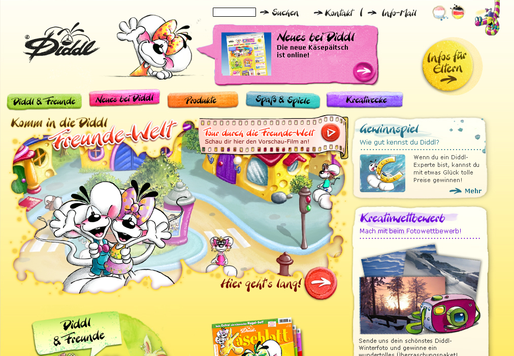 Projekte:Relaunch der Diddl WebsiteLaunch des POM-BÄR 3D-ChatsLaunch der Unilever Shrek PromotionBetreuung der hohes-C und Lufthansa-Websites